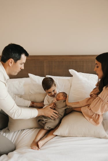 Gentle, movement-based prompts for indoor newborn sessions that capture emotional, authentic moments with baby, parents, and siblings.